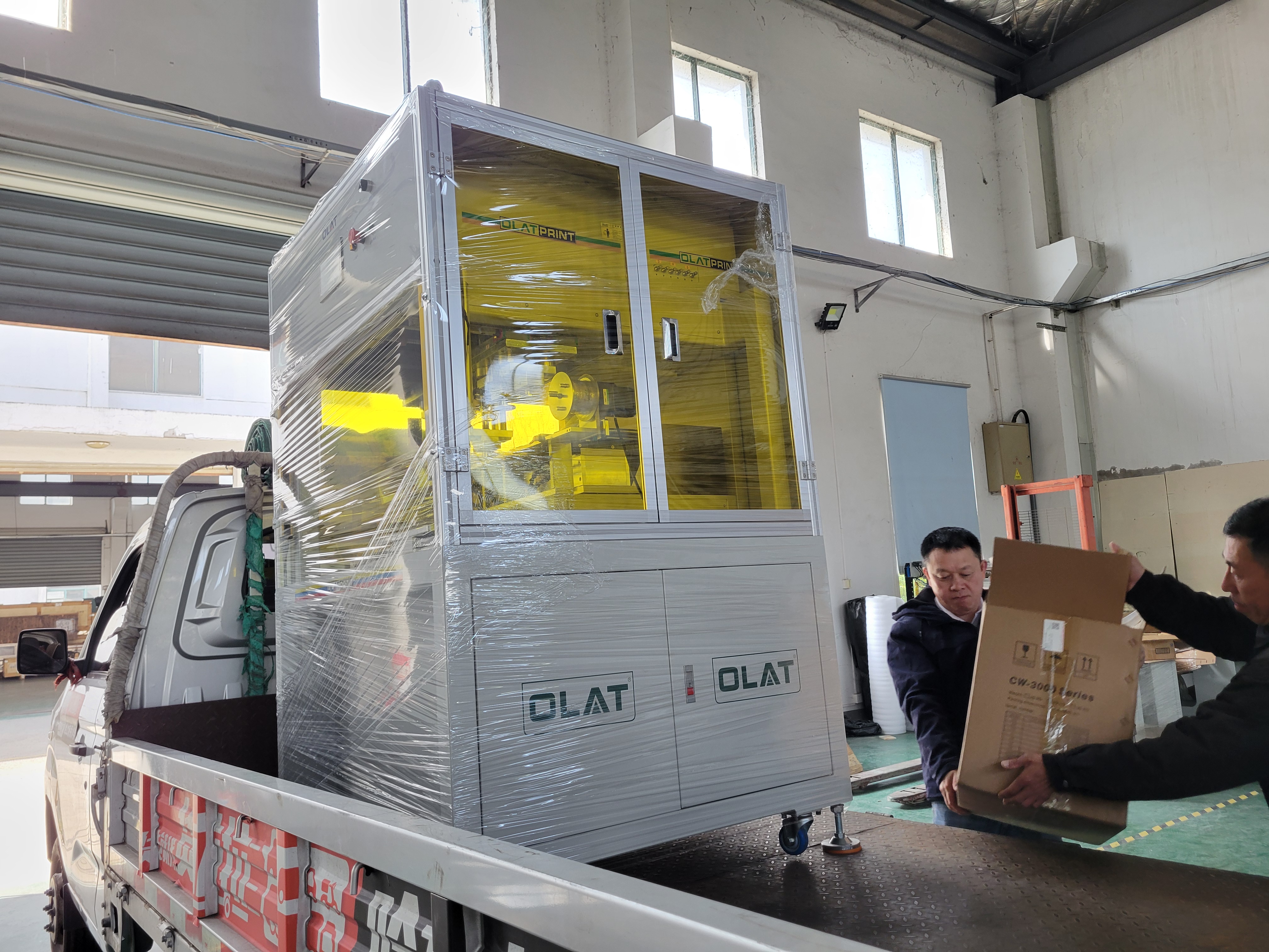 Recently, a new batch of automated pad printing machines independently developed by OLAT have completed factory inspection, been officially loaded and shipped, and delivered to customers.